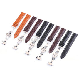 12/13/14/15/16/17/18/19/20/21/22/24mm Butterfly Clasp Genuine Leather Watch Band Strap