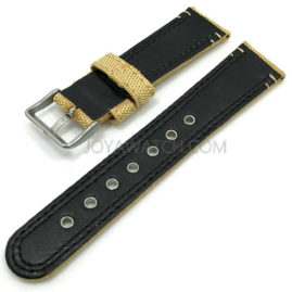 22mm Genuine Leather Nylon Composite Watch Band Beige Black Strap JY95009
